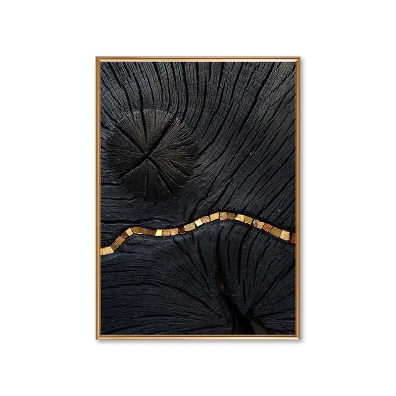Luxury Abstract Black Golden Line Texture Wall Art (Framed or Unframed)