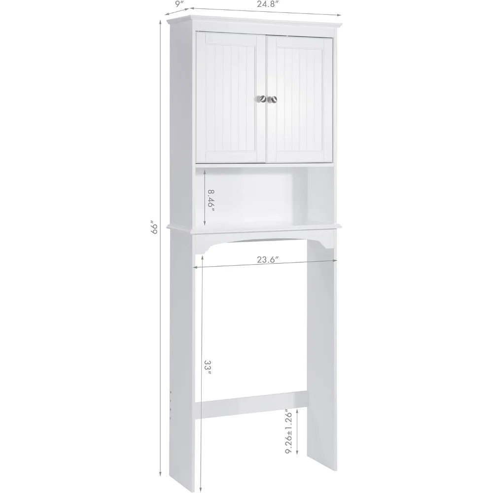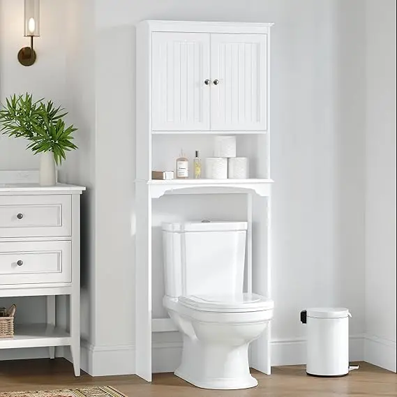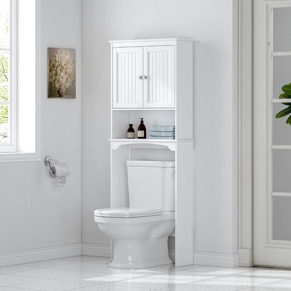 Maximize your bathroom space with this Over-the-Toilet Storage Cabinet in a crisp white finish. Designed with open shelving and a closed cabinet, it keeps toiletries, towels, and essentials neatly organized while adding a clean, modern touch to your bathroom. A perfect space-saving solution for small bathrooms or apartments.